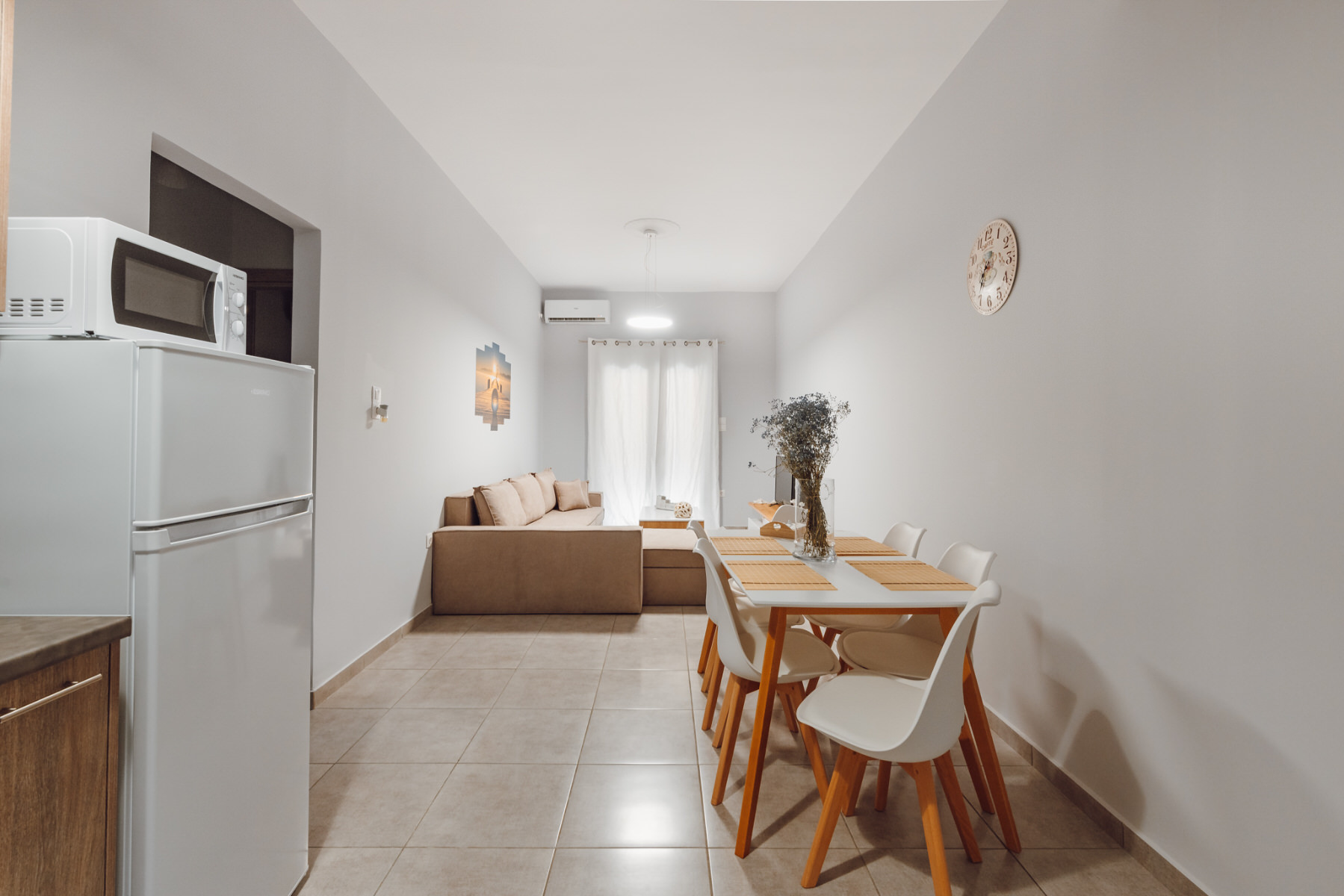 Στο μεγαλύτερο διαμερίσμα μας, μπορούν να φιλοξενηθούν εώς και έξι άτομα. Το πρώτο υπνοδωμάτιο διαθέτει ένα άνετο διπλό κρεβάτι, το δεύτερο υπνοδωμάτιο δύο μονά κρεβάτια και στον κυρίως χώρου υπάρχει ένας καναπές που μπορεί να μετατραπεί σε υπέρδιπλο κρεβάτι.